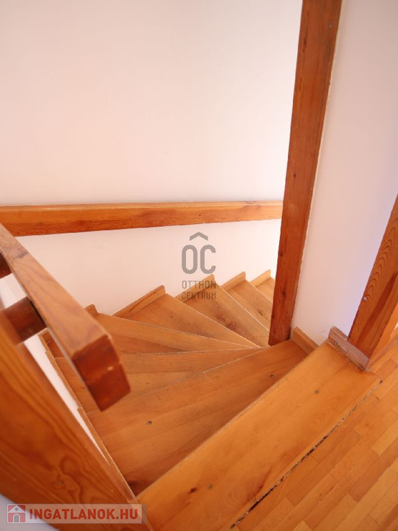 A lakás földszintjén előszoba, konyha, étkező, nappali, egy hálószoba, egy kisebb fürdőszoba, kazánház, kamra és tárolóhelyiségek kaptak helyet. A nappaliból és az étkezőből jutunk a két teraszra, onnan pedig a kizárólagos használati joggal rendelkező, jól szeparált, 542 nm-es parkosított kertbe.