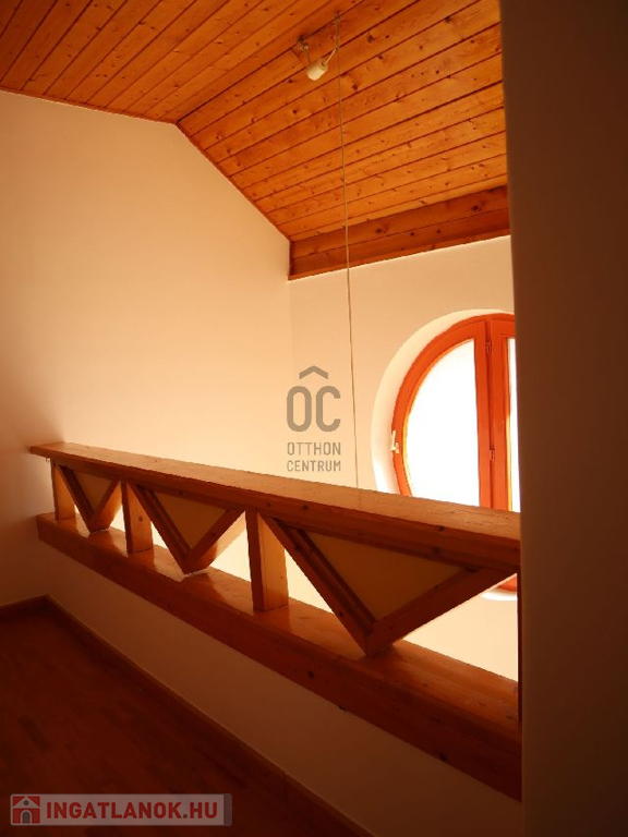 Szép kivitelű, kényelmes lépcső vezet az emeletre, ahol 5 hálószoba, 2 fürdőszoba, egy gardróbszoba van, valamint a folyosón beépített szekrény szolgálja a tárolási lehetőséget. A galéria jellegű folyosóról beláthatjuk a díjnyertes tervezésnek köszönhető izgalmas, napfényes tereket.