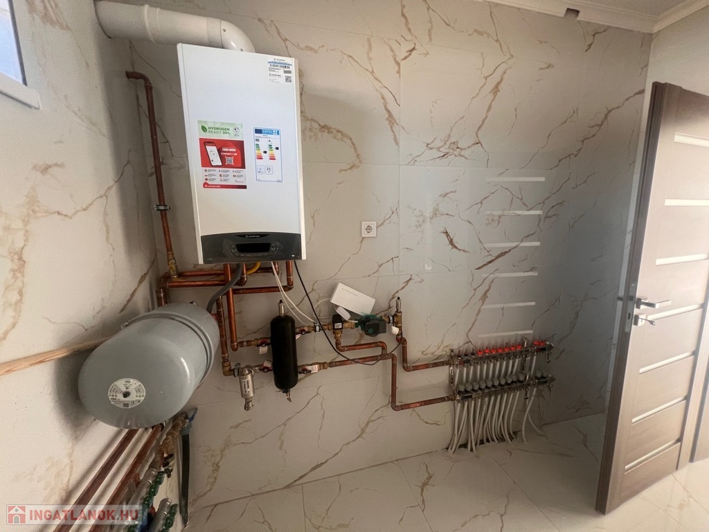 A ház egyedi gázfűtéssel felszerelt, valamint klímával is rendelkezik, így minden évszakban biztosított a komfortos hőmérséklet.