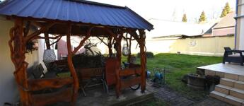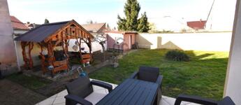 - A tágas belső udvar füvesített. Tároló és kerti kiülő is helyet kapott.