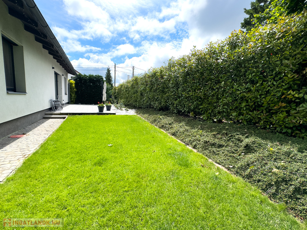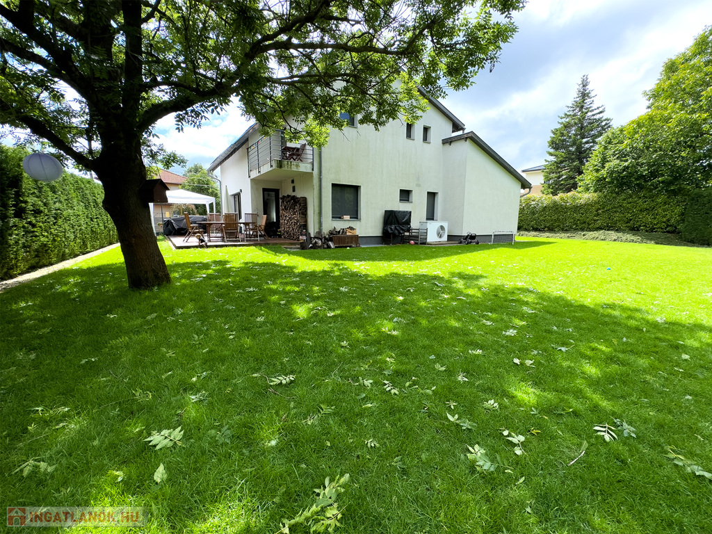 Eladó egy minimalista stílusban épült, kétgenerációs családi ház Nagykovácsiban. A telek területe 793 m2, a felépítmény 299 m2-es, 3 szintes, 6 szobás, 2 fürdőszobás és 2 gardrób szobás. Az ház rendelkezik napelemmel, hőszivattyúval, amely a padlófűtést, fali- és mennyezeti fűtést és hűtést is biztosítja. Minden nyílászárón elektromos redőny, szúnyogháló található. Automata öntözőrendszer, kandalló, 6 kW-os napelemes rendszer, fűtött, kétállásos garázs, a pinceszinten szauna és jakuzzi helyiségek előkészítve. Számos tároló és hobbi szoba lett kialakítva. Ha elegáns és luxus környezetben szeretne élni, ne habozzon, hívjon!