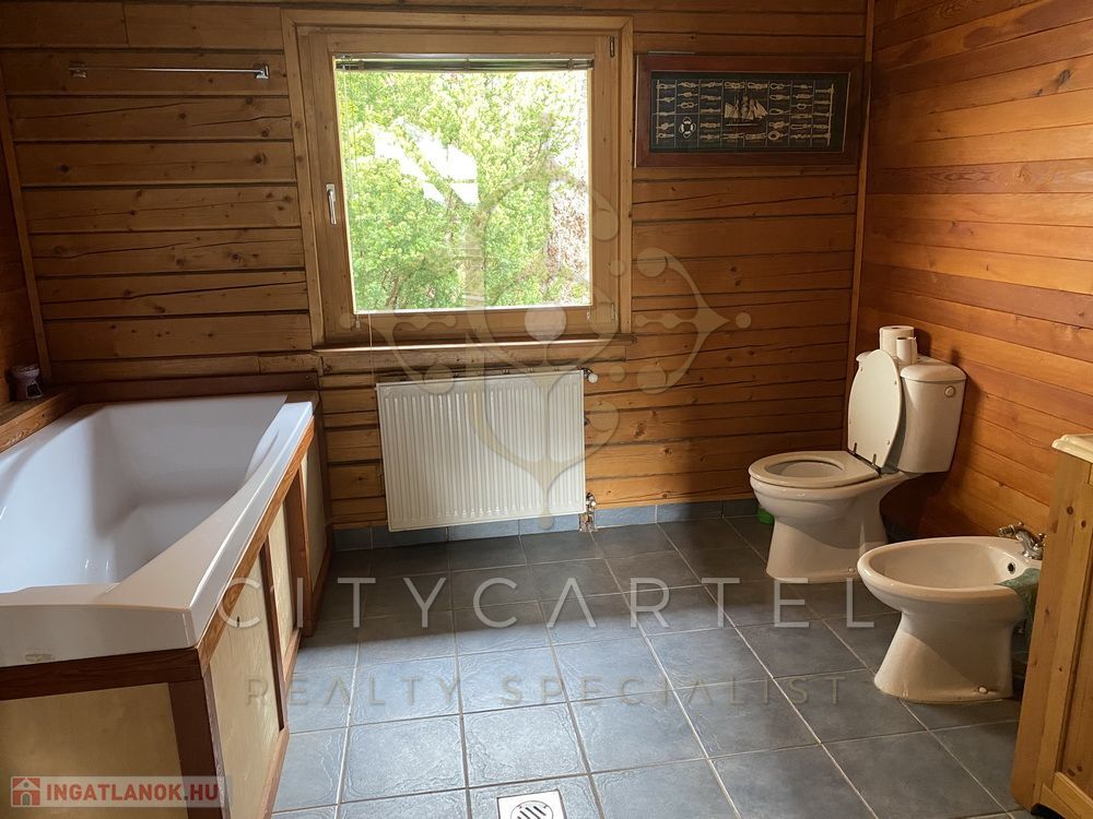 A ház természetes anyagokból – fából és terméskőből – épült, jól szigetelt, melegséget áraszt, és ideális azok számára, akik az egyediség mellett a praktikumot is keresik.