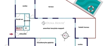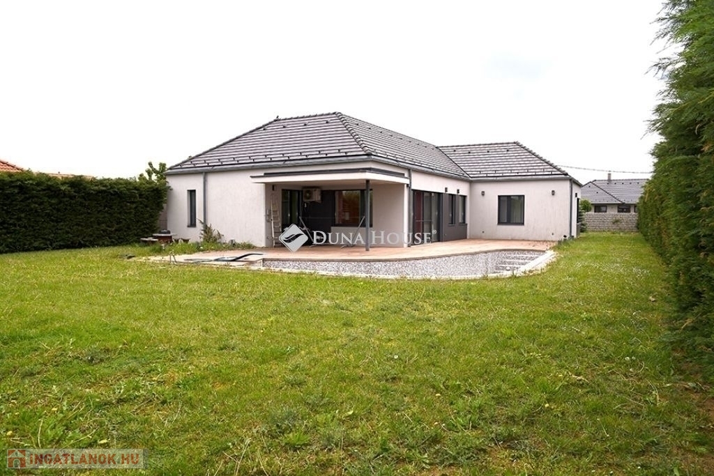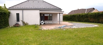 A rendezett, kerítéssel körbe határolt telken 47 m3-es medence, napozóval.