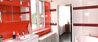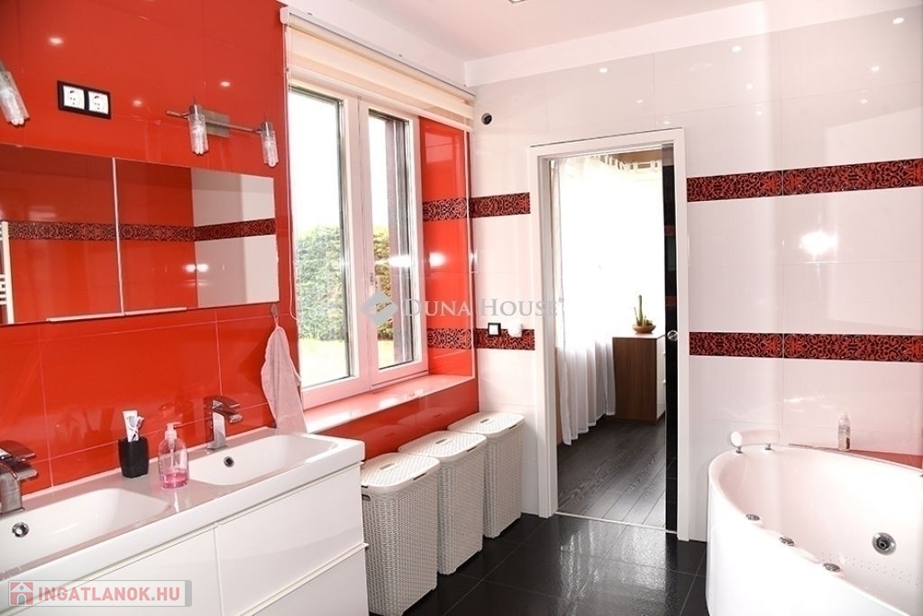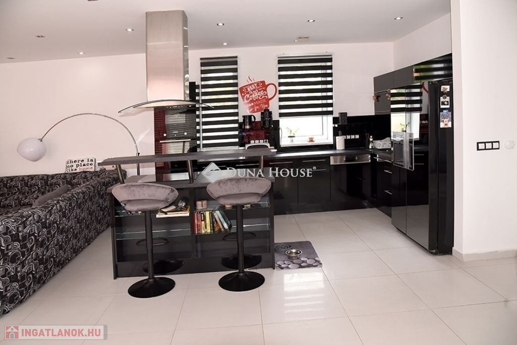 A 30-as Porotherm (HS Profi) + 20 cm vastag (Austrotherm Grafit) falazatú ház, hőszivattyú (levegő-víz), padló fűtéses, amely 200 l-es puffer tárolón keresztül kapcsolódik a rendszerre. Nyáron a hűtés a hőszivattyúról üzemel ( padló és fancol). A nyílászárók Internorm Thermo Passiv műanyag/alu magas termohab hőszigetelésű és 3-réteg üvegezésüek, elektromos zsaluziával, szúnyoghálóval. A belső burkolatok, a beépített bútorok magas minőségűek, a beépített részek a vételár részét képezik.