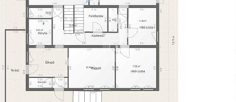 - Az előszobából a tágas nappaliba és egy barátságos étkezőbe érünk, ahonnan egy 20 nm-es teraszra léphetünk ki.