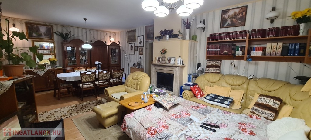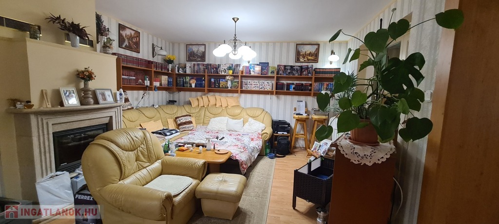 A lakótér 135 m², elrendezése praktikus és élhető: két nagy méretű szoba, két félszoba, valamint egy amerikai konyhás nappali alkotják a főbb lakótereket. A nappaliban kandalló gondoskodik a meghitt hangulatról, míg a teljes házban gázcirkó fűtés biztosítja a kényelmes hőmérsékletet. A klimatizált helyiségek pedig a nyári hónapokban teszik komfortossá az itt töltött időt.