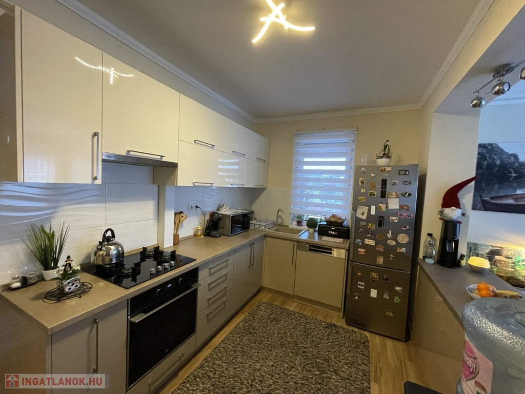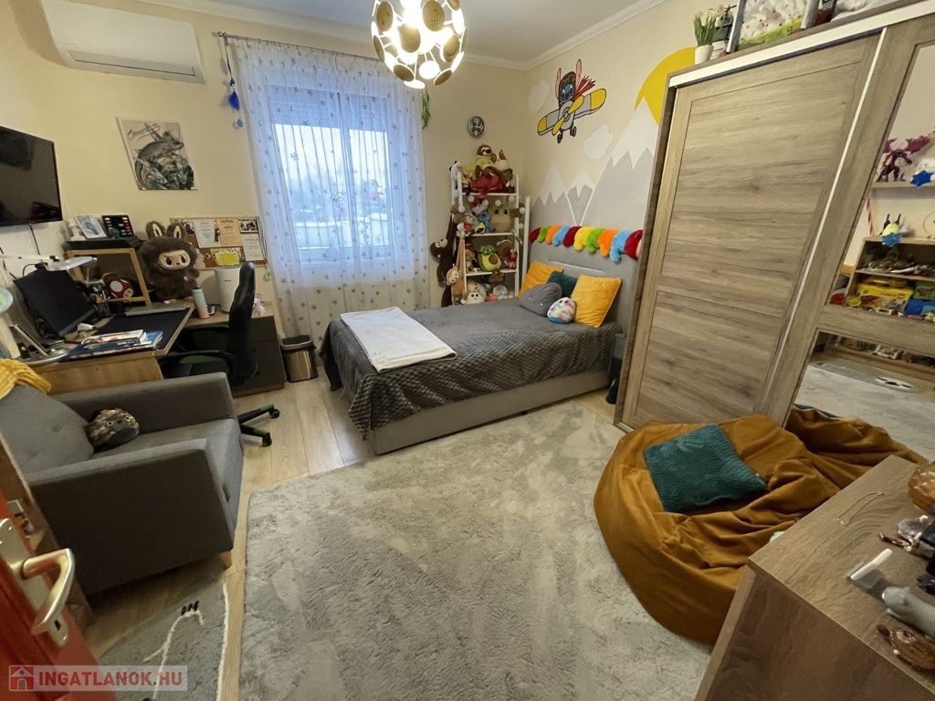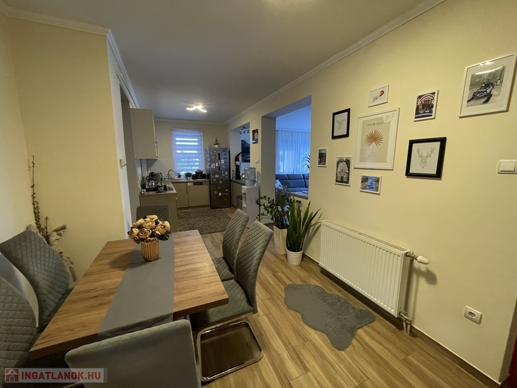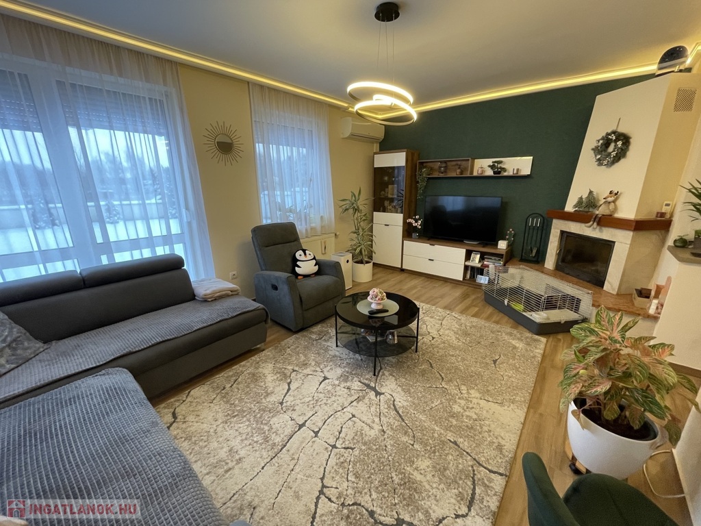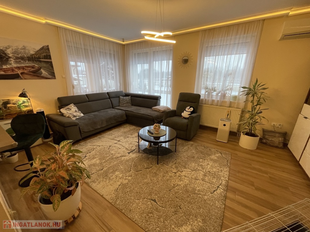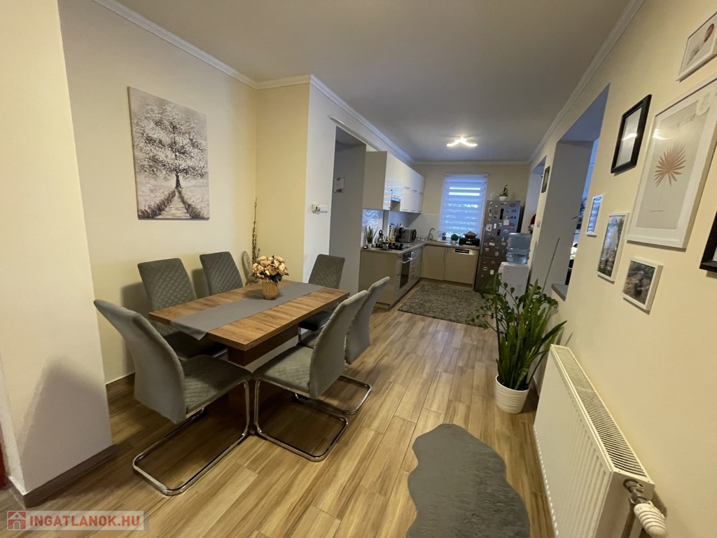 Csendes, rendezett környezetben kínálunk megvételre egy 2007-ben téglából épült, szigetelt, 105 m²-es családi házat, melyhez 25 m²-es, fűtött, elektromos kapuval ellátott garázs tartozik. Az ingatlan elosztása kiváló: két tágas szoba, amerikai konyhás nappali, nagy méretű fürdőszoba, valamint egy 30 m²-es nyitott és egy 20 m²-es fedett terasz szolgálja a kényelmet.