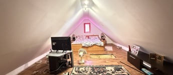 A ház földszintjén egy nagy konyha-étkező, nappali és a fürdő/wc osztozik. A nagy hálószoba az emeleten kapott helyet.