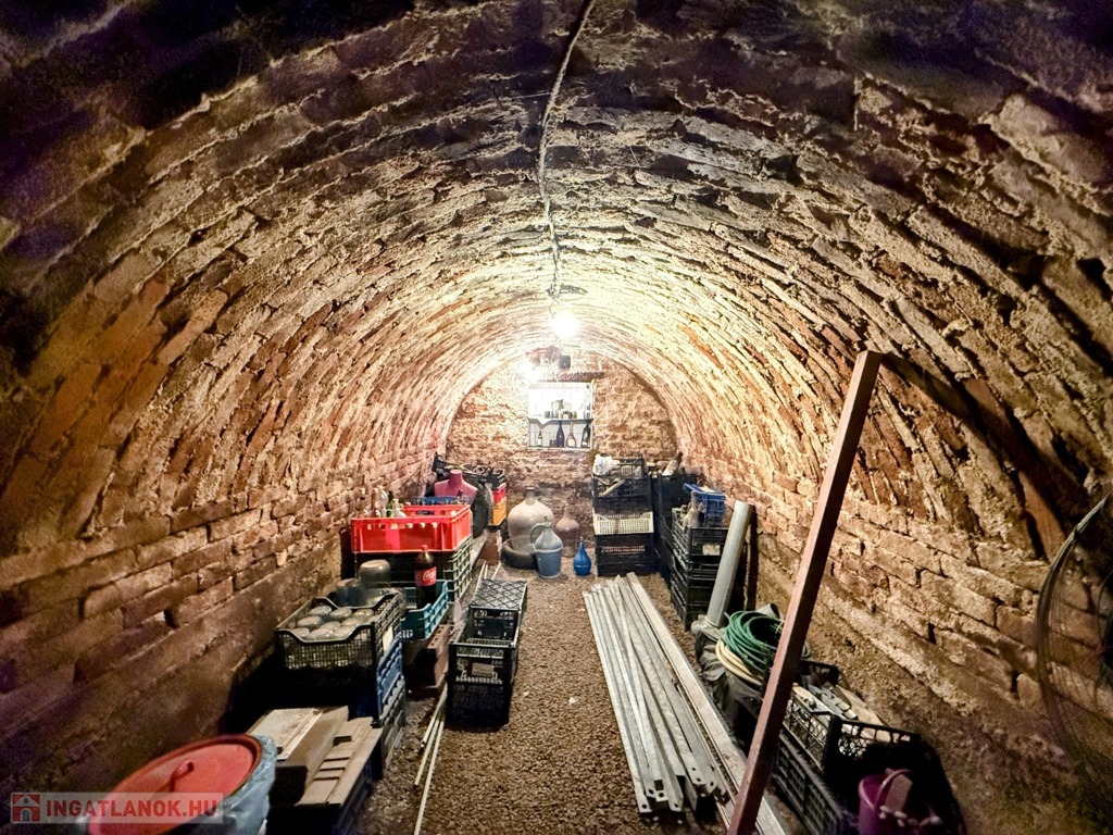 A szuterén szint is nagy, itt a két nagy helyiség mellett egy szép borospince is boldogítja majd az új tulajdonost.