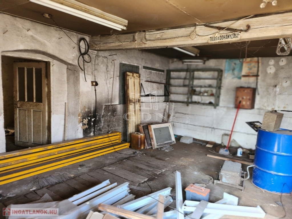 A telken lévő kertes ház az 1950-es években épült, 50cm-es vegyes falazattal. A tetőszerkezete nyeregtető, cserépfedéssel ellátva. Az épületbe villany, víz, gáz és csatorna be van kötve. A főépület és a melléképületek erősen felújítandók, egyes részei bontandó állapotúak.
