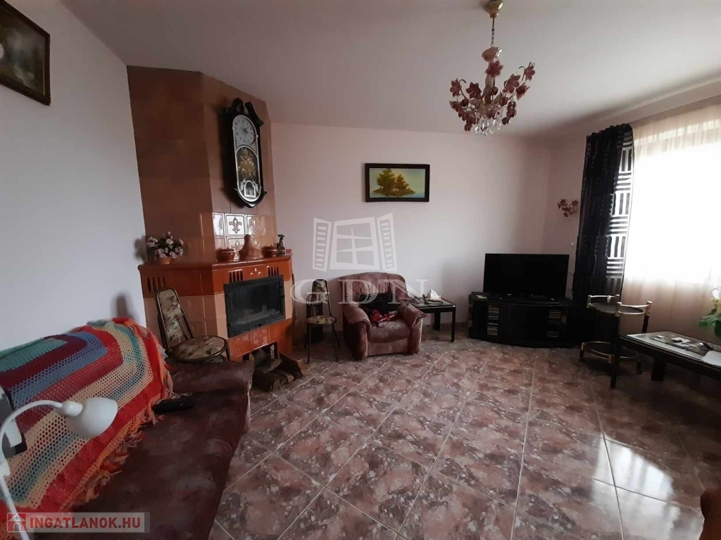 Meleget gáz-kazán biztosítja radiátoros hőleadással, a nappaliban kandalló fokozza a komfortérzetünket.