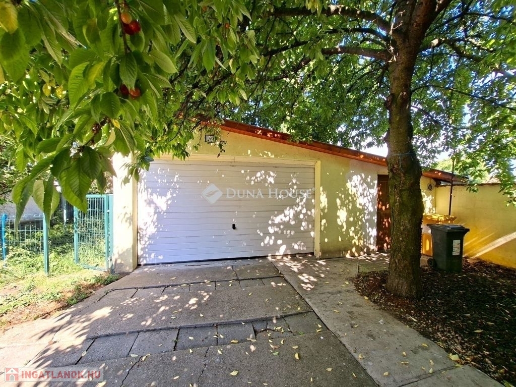 Kiegészítő jellemzők: beépített szekrények és tolóajtós gardrób, kovácsoltvas kerítés, gondozott udvar díszes cseresznyefával. Könnyen karbantartható telek.