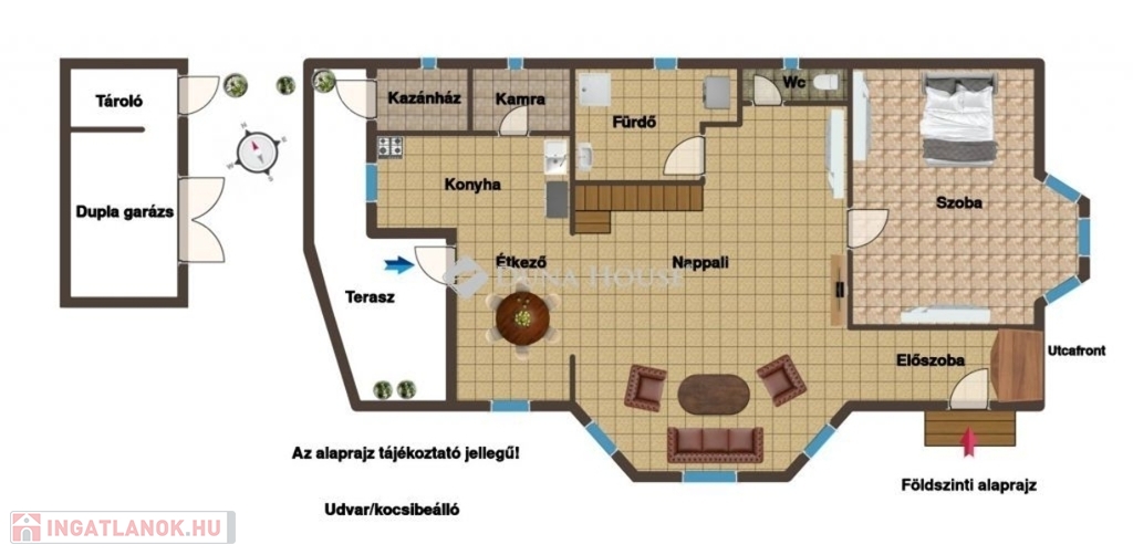 - Garázs: kétállásos, külön bejárattal + tároló;