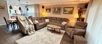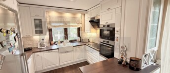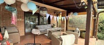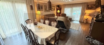 A két szintes, 198 m2-es ház + közvetlen a nappalihoz kapcsolódó, 20 m2 téliesíthető terasz és a kert végében megépített, szintén teljesen felszerelt, téliesíthető, grill terasz , fürdőszobával, wc-vel: