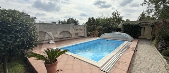A mediterrán otthonokban,ház minden szegletéből árad a nyugalom , otthonosság, a pozitív energiát hirdeti, ahol a mindennapok élvezete hangsúlyos.A csodálatos növényekkel , pálmafákkal, kialakított kert,vízfogatóval és ellenáramoltatóval felszerelt medencével és a családi , baráti rendezvényeknek kialakított , rusztikus grill terasz ,amely szintén téliesíthető , saját tusolós fürdőszobával .