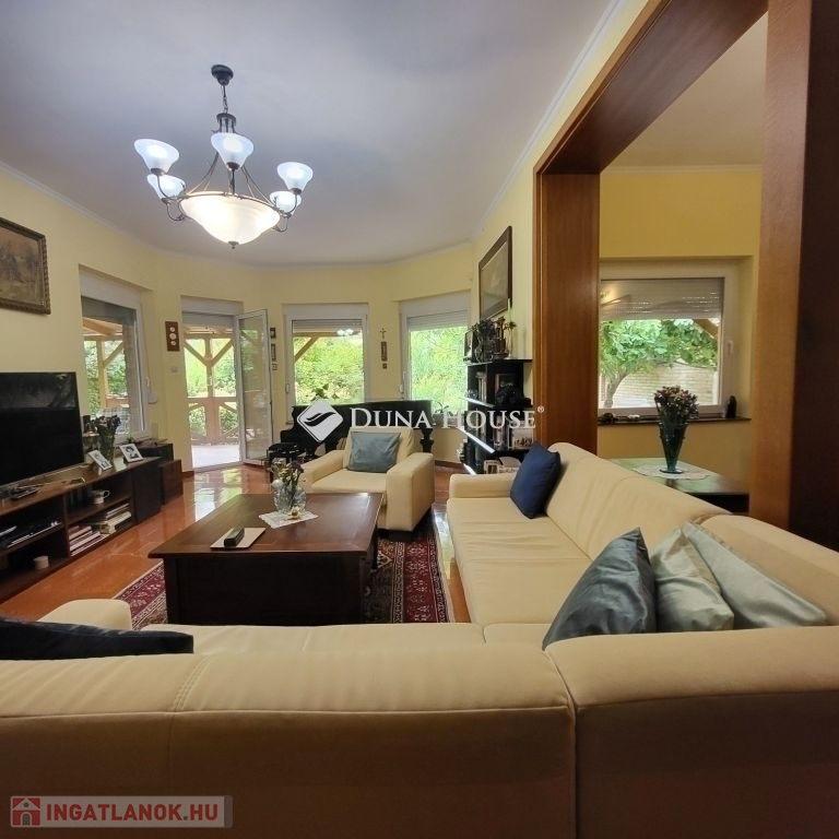 Gondosan parkosított 969 m²-es telken, tágas, napfényes terekkel, kiváló elosztással és három autó számára biztosított parkolási lehetőséggel (garázs + fedett + nyitott beálló).