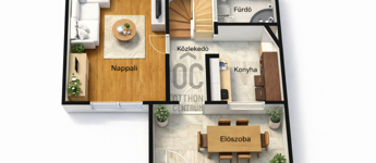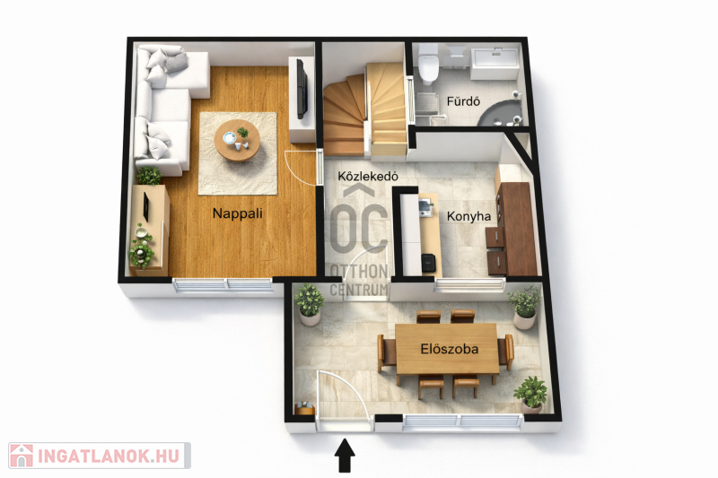 ¤ Földszint: tágas előszoba, konyha-étkező, kamra, fürdőszoba WC-vel, valamint egy világos nappali