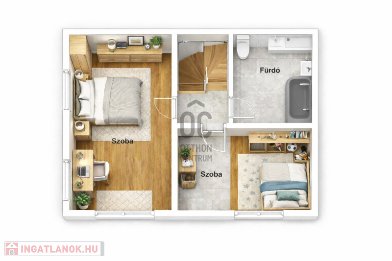 ¤ Emelet: közlekedőről nyíló két különálló szoba és egy második fürdőszoba WC-vel