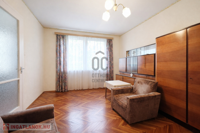 Nyugodt, zöldövezeti lakókörnyezet játszótérrel, jó szomszédsággal.