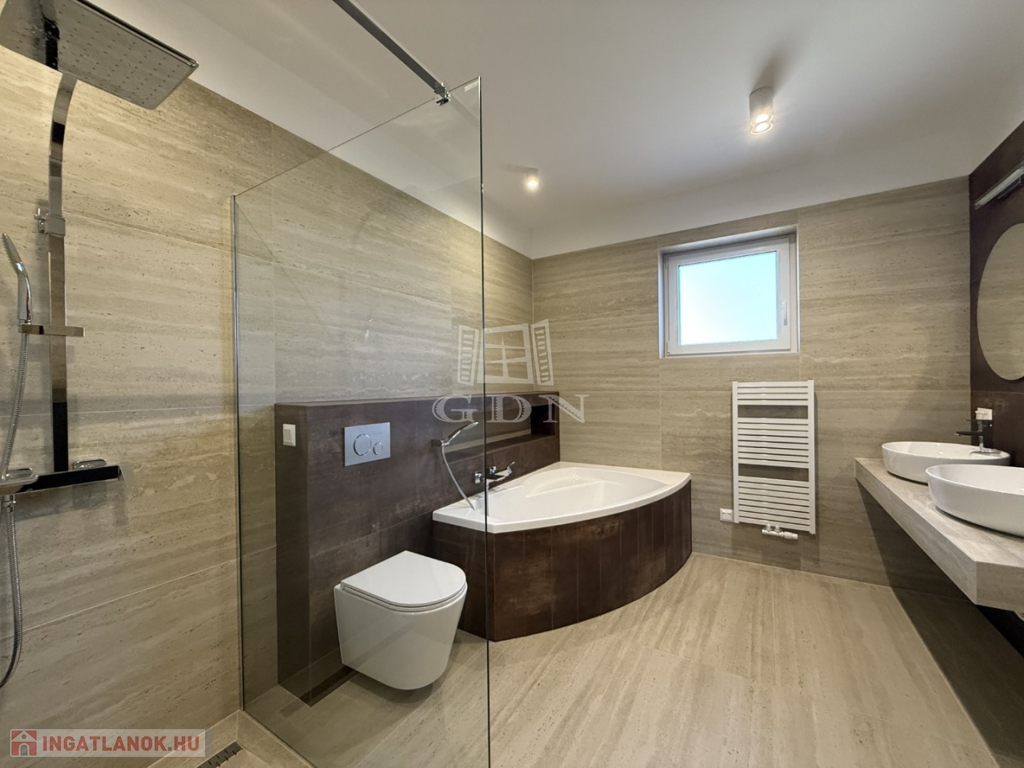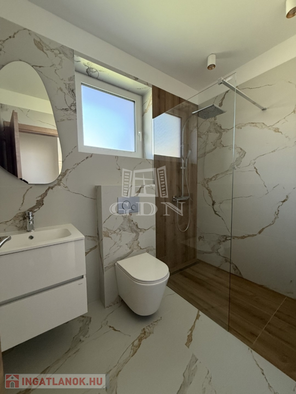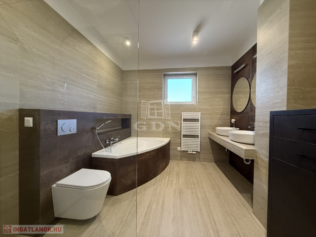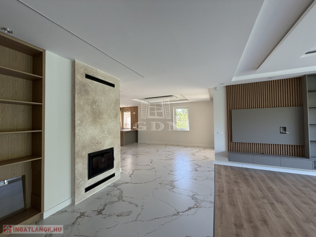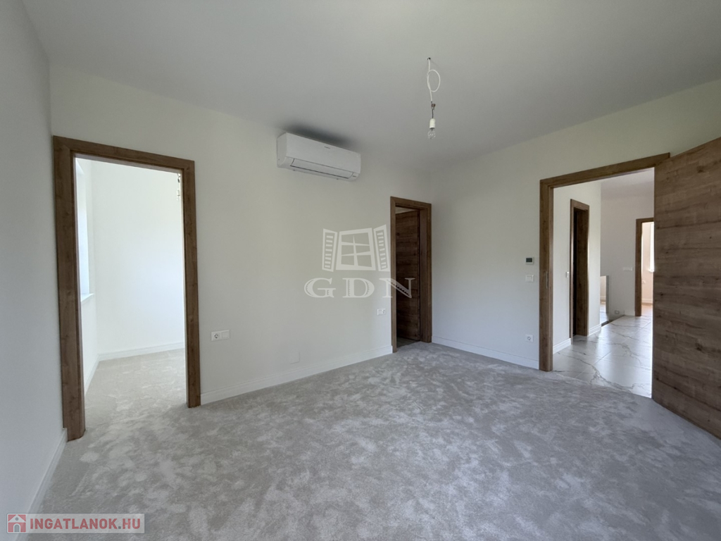 A korszerű, hőszivattyús fűtési-hűtési rendszer minden helyiségben fan-coil egységekkel, szobánként szabályozható hőmérséklettel biztosítja az energiatakarékos és kényelmes klímát. A nyílászárók alumínium motoros redőnyökkel, szúnyoghálókkal, emelő-toló teraszajtóval felszereltek, az épület biztonságát riasztó és kamera rendszer garantálja.