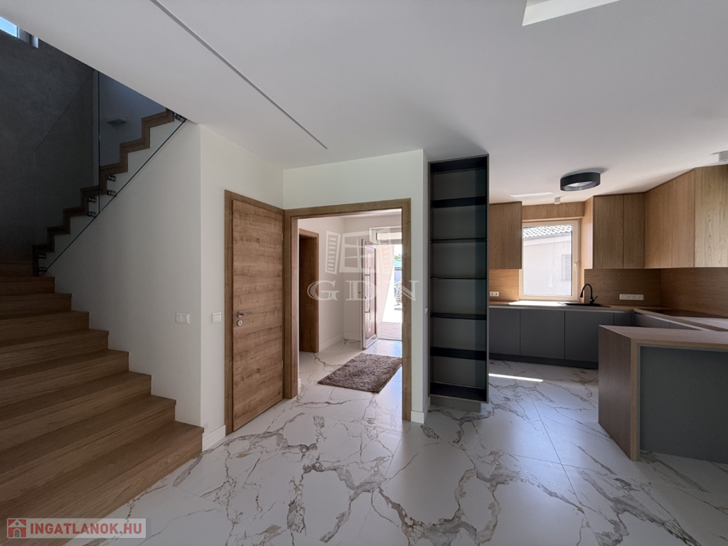 A házak 2025-ben épültek, korszerű tégla falazattal, cseréptetővel, földszint + teljes értékű emelet , nappali+ 4 szoba kialakítással, saját telekrésszel, önálló dupla garázzsal, valamint különböző extra kényelmi funkciókkal – medencével vagy jakuzzival – parkosított saját kerttel rendelkeznek.
