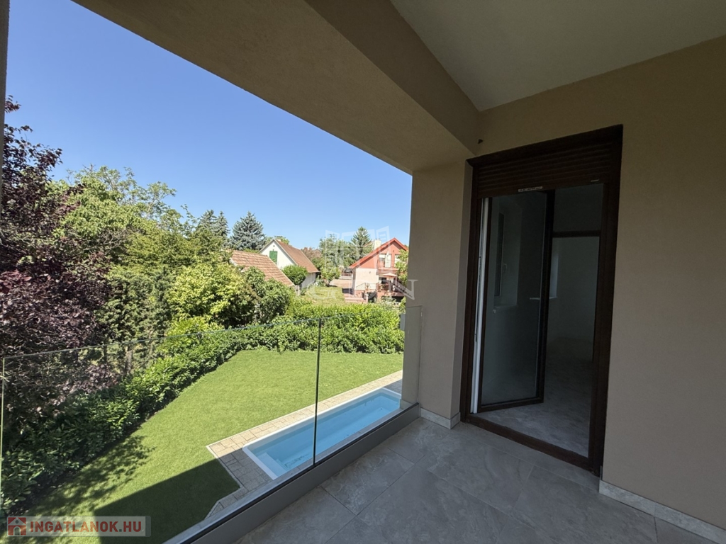 Az emeleti szinten egy központi nappali fogad, amelyből két hálószoba, fürdőszoba, valamint egy szülői háló nyílik, külön gardróbhelyiséggel és saját fürdőszobával. A 12,4 m²-es erkély tovább fokozza az emeleti tér kényelmét. Az emeleti terasz a szülői hálóból és a fenti nappaliból is megközelíthető.