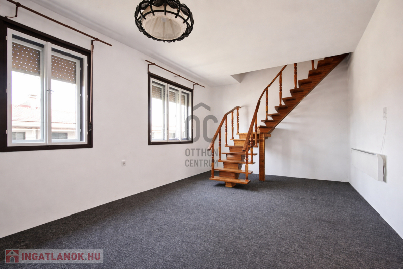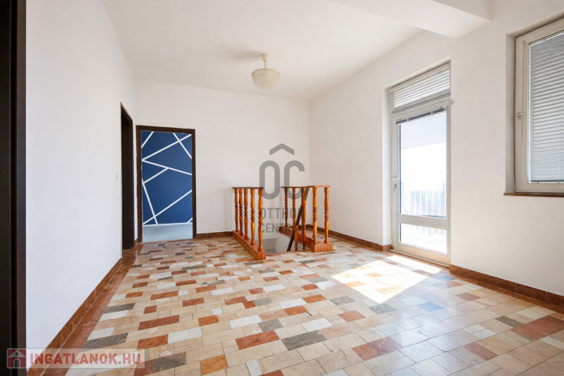 • 100 m², külön bejáratos emelet + tetőtér: nappali–konyha–étkező + 3 hálószoba, 2 fürdőszoba