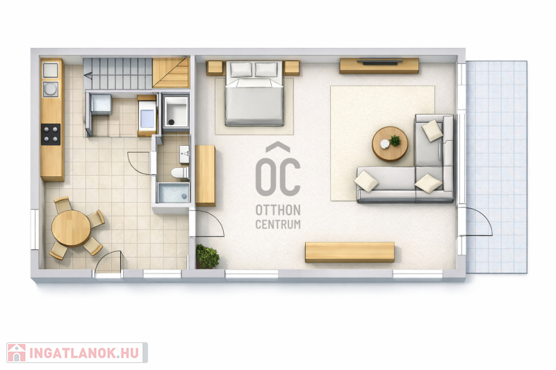• 40 m² kis ház, pincével, 17 m²-es terasszal