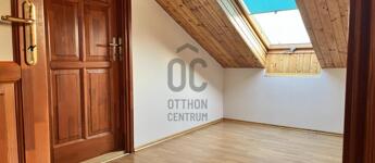 -A tetőtérben 2 szoba, fürdőszoba (zuhanyzóval, káddal, WC-vel és bidével), egy nagyméretű helyiség ami pillanatnyilag tárolóként funkcionál.
