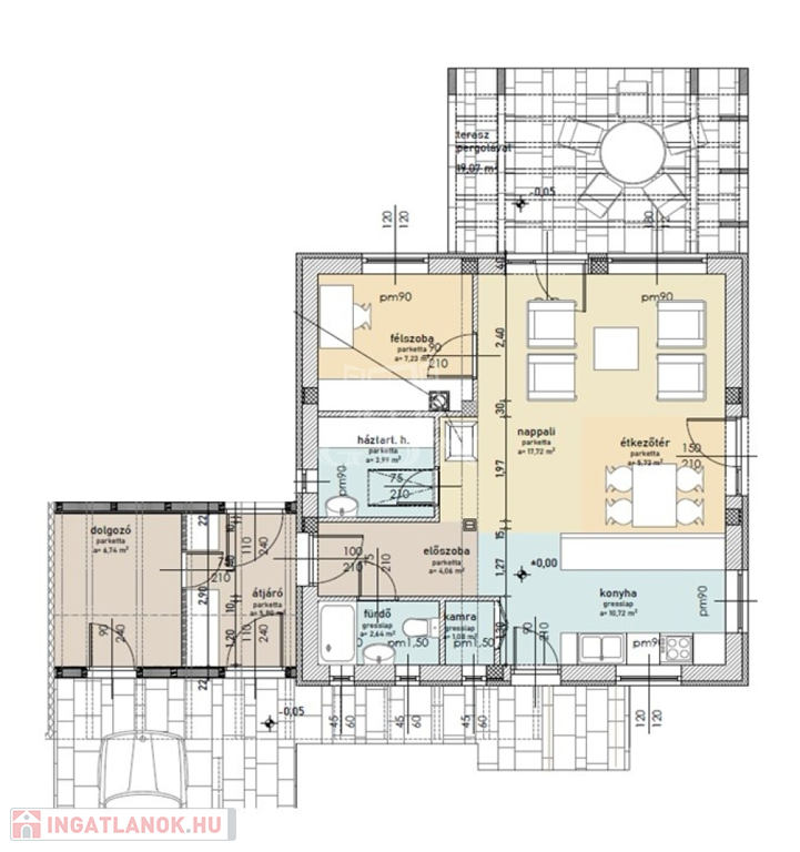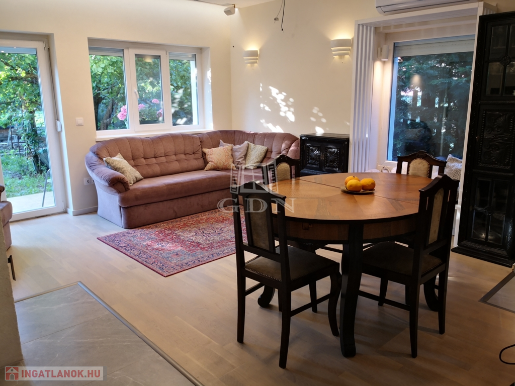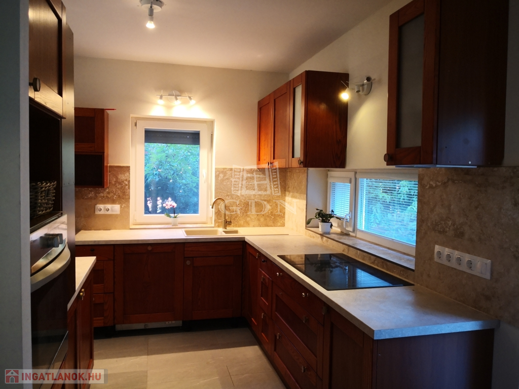 A ház energetikai minősítése: A++ Mindenhol természetes anyagokkal, fa padlóval, tölgyfa konyhabútorral és mészkő burkolattal találkozunk.
