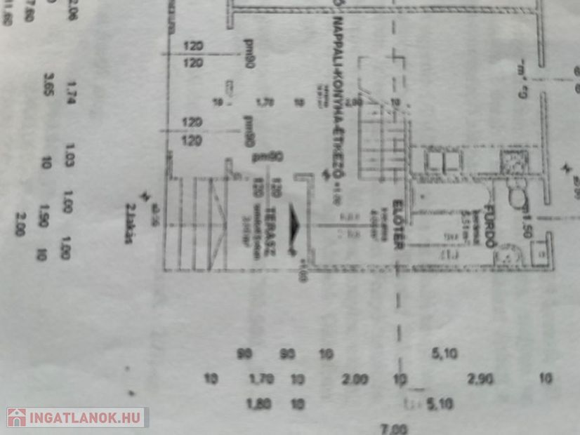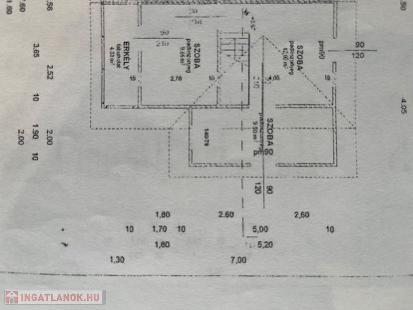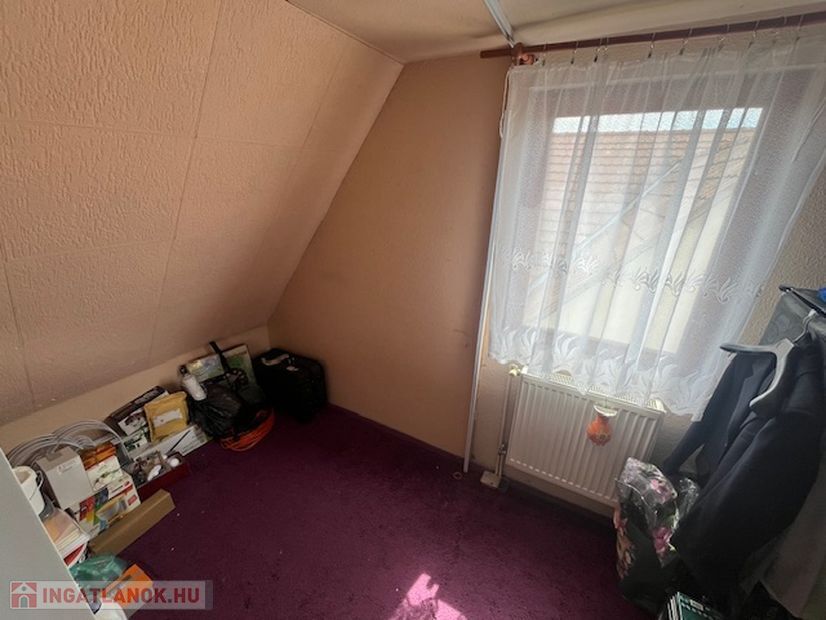 Elosztása:földszinten -előtér, amerikai konyhás nappali, fürdőszoba. Tetőtérben:közlekedő, 3 külön bejáratú szoba,loggia.