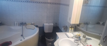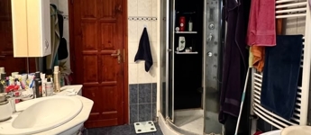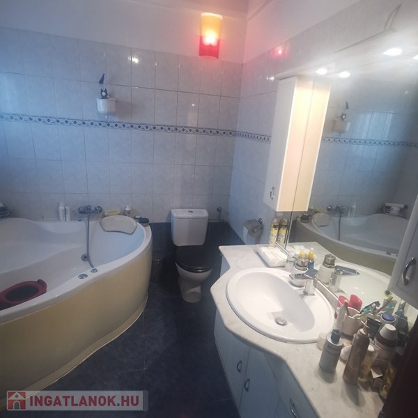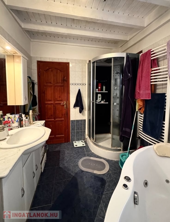 - tágas fürdőszoba zuhanyzóval, fürdőkáddal, mosdófallal, wc-vel,