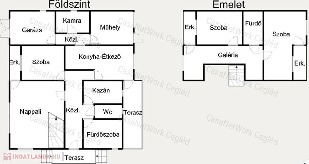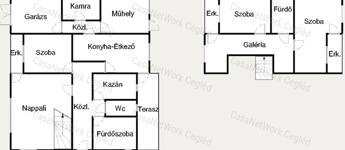 - Földszint : 141,12 nm ( nappali vörösmárvány burkolat, szoba, előszoba, kádas fürdő, külön Wc, kazánszoba, étkező, konyha, folyosó, melyek kerámia burkolatúak. A nappali galériás.
