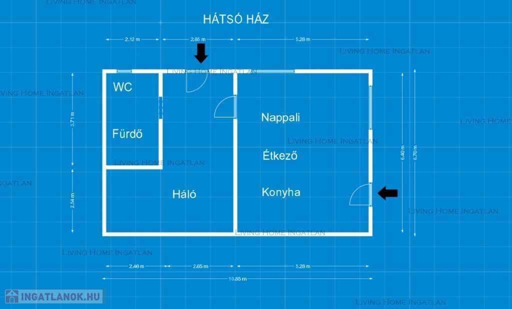 A második, hátsó ház 57 nm-es, külön bejáratú, teraszkapcsolatos.