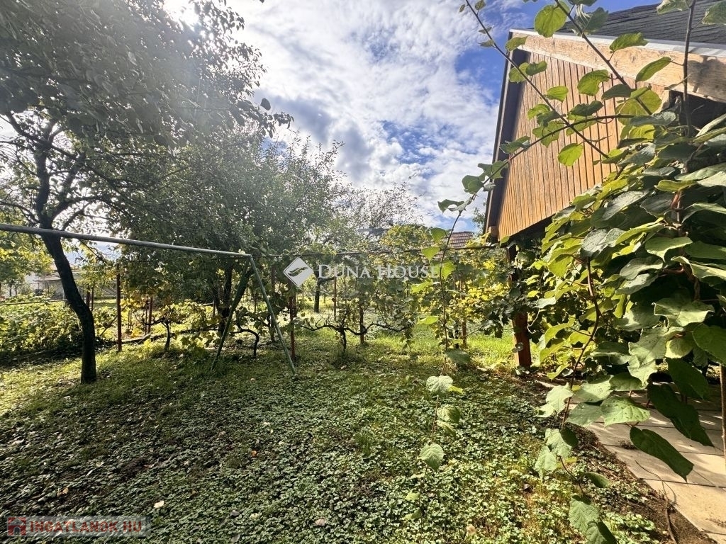 A vidéki hangulatot idéző családi házas utcában álló lakóingatlan 716 m2-es sík zöld telekkel rendelkezik, részben gyümölcsfákkal és konyhakerttel beültetett.