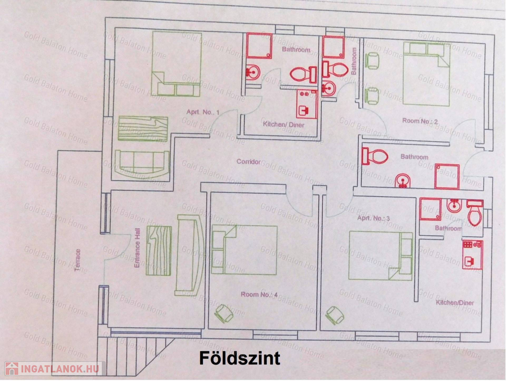 Háromszintes APARTMANHÁZ csendes helyen, a Zalakarosi Gyógyfürdőtől mindössze 1500 méterre eladó.