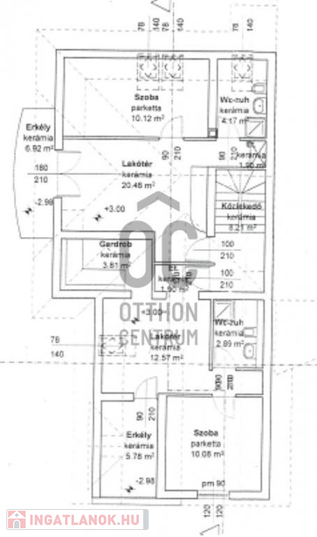 - Fűtése és a meleg víz ellátás gáz cirkó kazánról biztosított, víztároló kapacitással.