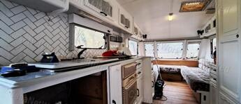 - a lakókocsi gázpalack segítségével fűthető , fürdőszobával és konyhai eszközökkel , tárolókkal ellátott