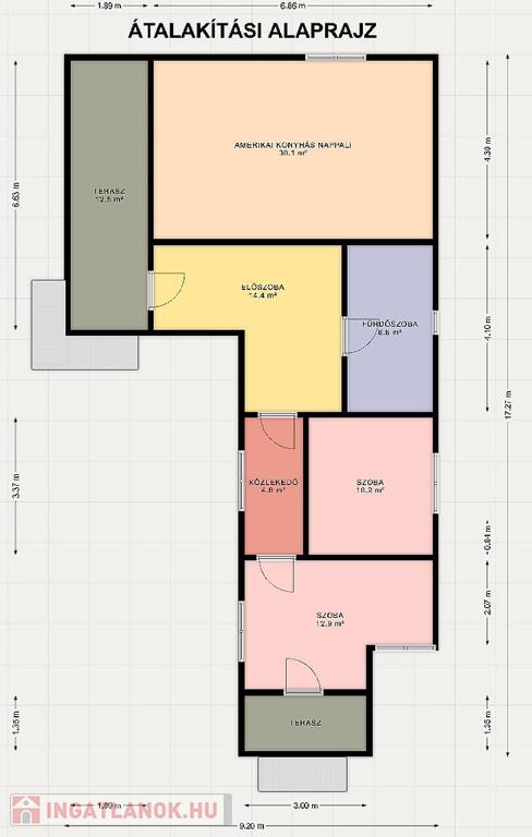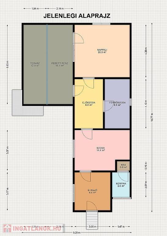 Telek besorolása: Lke-1/XVI/O1 – 14 méter utcafront alatt oldalhatárra kell építeni, 14 méter utcafront felett pedig 1 métert is hagyható oldalhatáron.