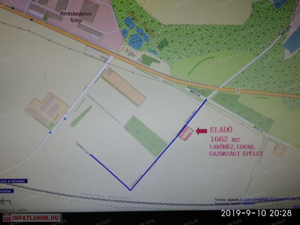 Megvételre kínálok Győrben egy 1662 nm-es külterületi telket, melynek utcafrontja 52,61 m szélességű, besorolása kivett lakóház, udvar, gazdasági épület.
