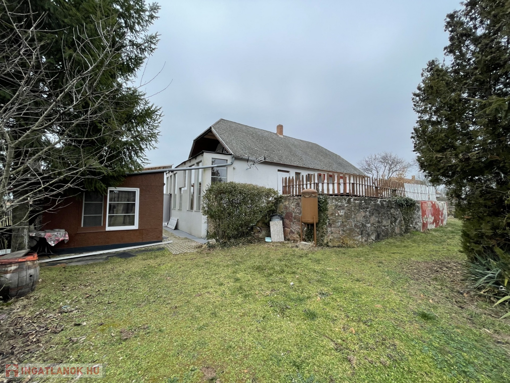 Az épület ikerházként téglából épült, egyik fele 70 nm, ahol a földszinten kialakításra került 2 szoba, konyha-étkező és egy fürdőszoba, a lakószint alatt egy szoba, konyha és borospince található.