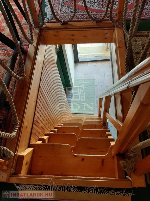 Az emeleten 2 hálószoba van. Bal-jobb, bal-jobb -os fa lépcsőn jutunk fel az emeletre.