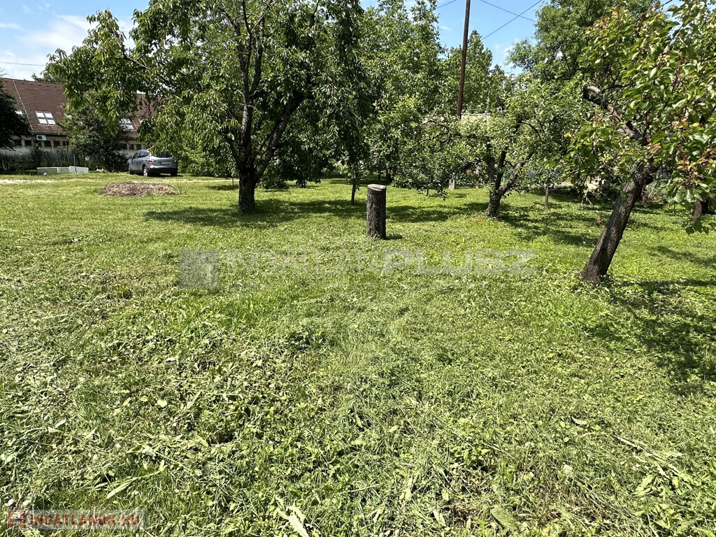 A telek bekerített, közművek az utcában.