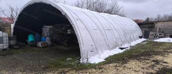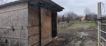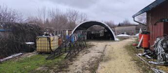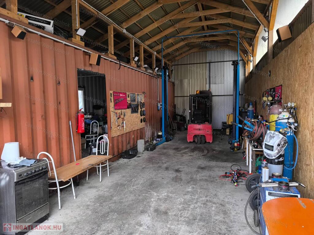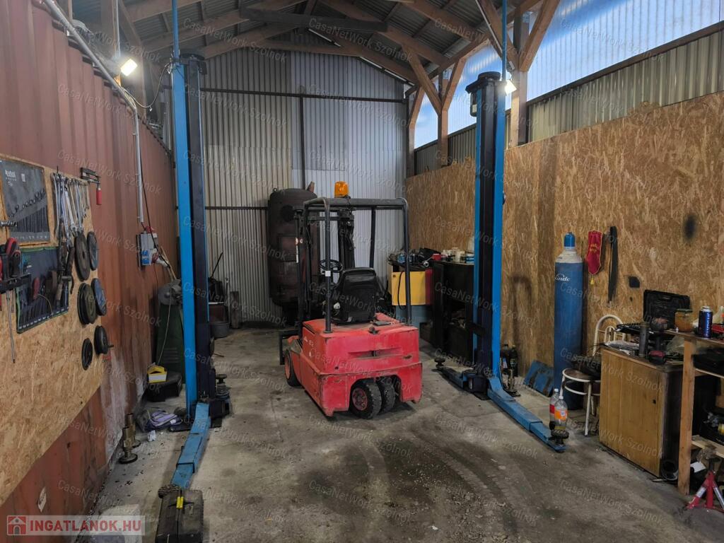 - a területen egy 76 m2-es könnyűszerkezetes zárt csarnok, 1 fedett tároló ( 200 m2 ), 1 konténer ( 28 m2 ), és egy állattartásra is alkalmas alsó épület ( 40 m2 )  található
